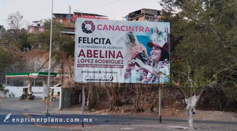 Al oriente de la ciudad, permanece un anuncio espectacular con la imagen de la alcaldesa de Acapulco, Abelina López Rodríguez.