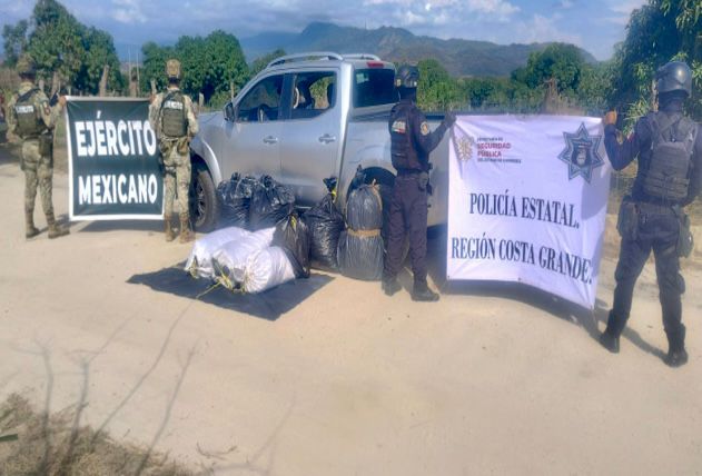 Aseguran droga y un vehículo con reporte de robo en Tecpan