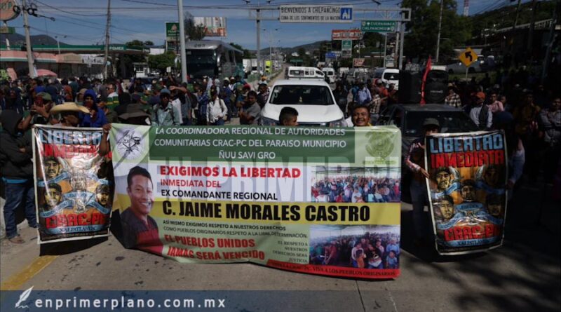 Integrantes de la Coordinadora Regional de Autoridades Comunitarias – Policía Comunitaria (CRAC-PC) bloquean la Autopista del Sol a la altura del Parador del Marqués, para exigir la liberación de Jaime Morales Castro excomandante regional y comisario del municipio de Ñuu Savi.