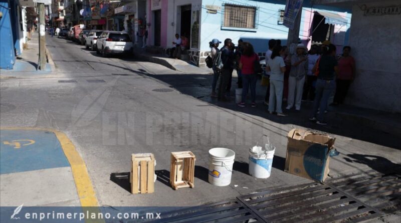 Vecinos de la colonia Centro bloquearon la calle Teofilo y Leyva con esquina Hermenegildo Galeana para exigir el suministro de agua potable a la Comisión de Agua Potable y Alcantarillado de Chilpancingo (CAPACH).