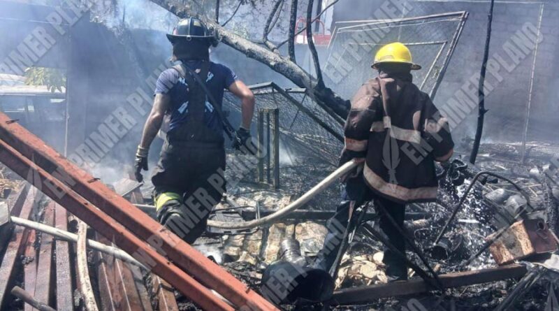 Bomberos del municipio se trasladaron quienes encontraron en llamas el sitio donde había llantas, pedazos de metal, maleza seca y basura, procediendo a sofocar el fuego.