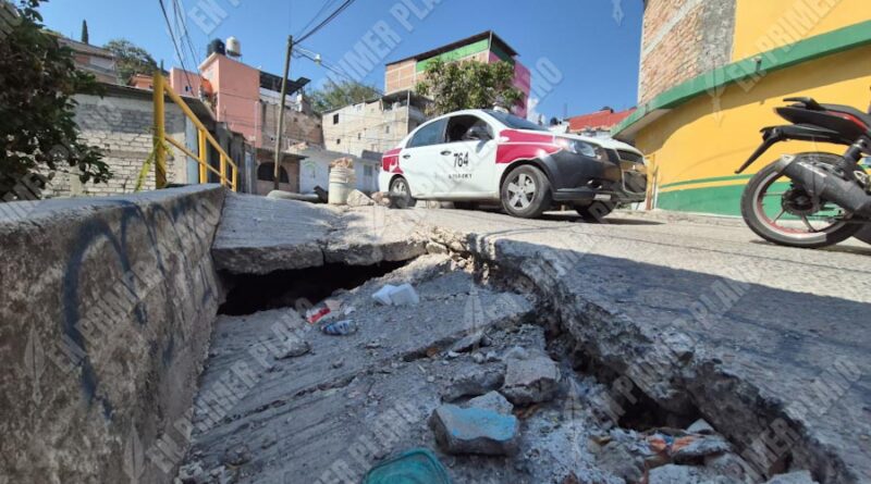 El hundimiento en la vialidad es de aproximadamente dos metros de largo por unos 60 centímetros de profundidad, que sigue avanzando debido a las vibraciones de los vehículos que pasan por la zona.