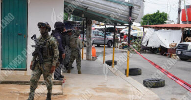 Fuentes de seguridad informaron que alrededor de las dos de la madrugada de este domingo corporaciones policíacas de los tres órdenes de gobierno acudieron al lugar peritos de la Fiscalía, se encargaron de realizar las actuaciones de ley correspondientes, visualizando encima de las bolsas, dos cartulinas con mensajes, en los que referían que eso les había pasado “por andar extorsionando y andar robándole a la gente sus propiedades”.
