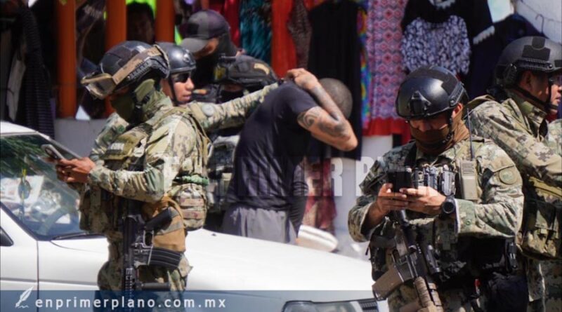 Agentes de la Marina Armada de México detuvieron en flagrancia a dos civiles armados después de que hirieron con disparos de arma de fuego a una comerciante de la colonia Icacos, al mediodía de hoy.