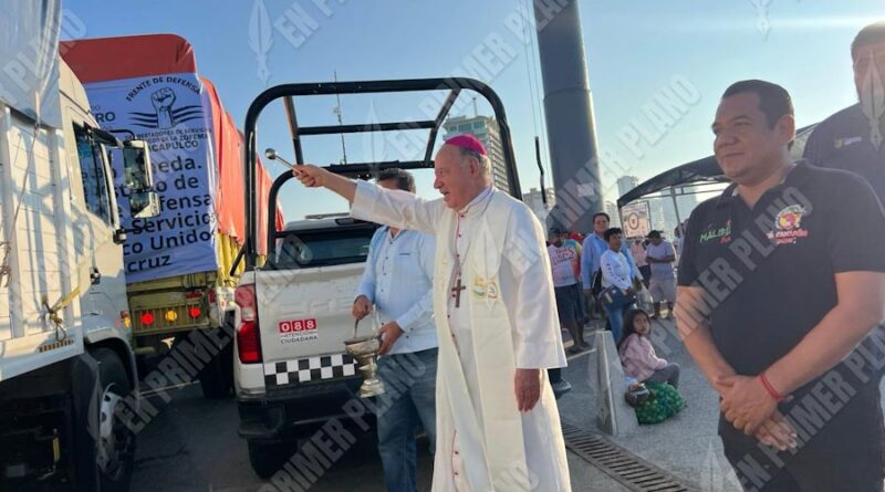 El arzobispo de Acapulco, Leopoldo González González, fue quien dio la bendición a todos los integrantes del Frente de Defensa de la Zona Federal Marítimo Terrestre, como a los conductores y funcionarios.