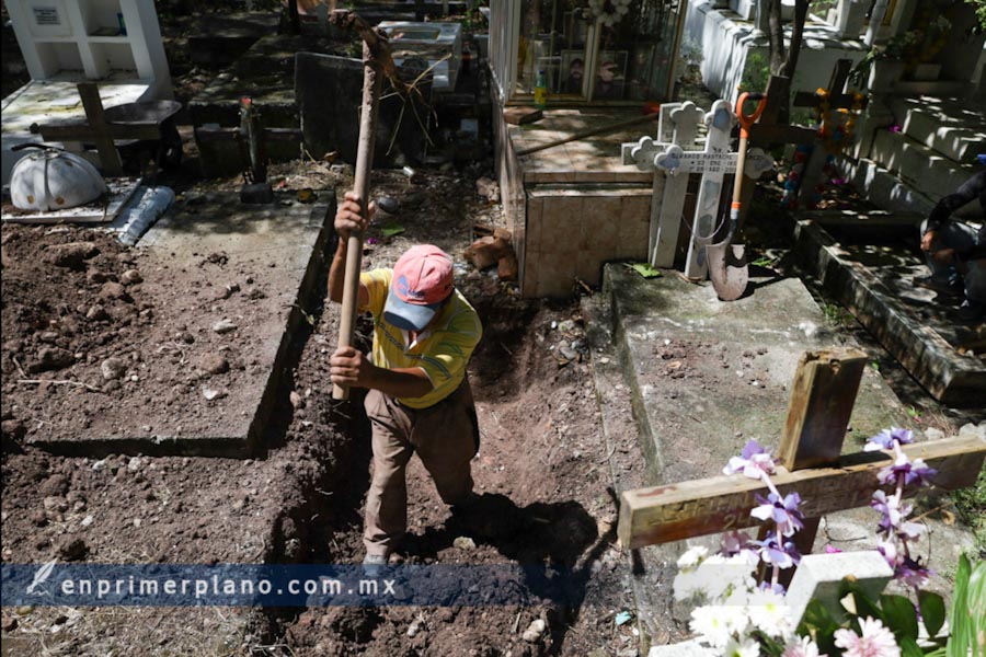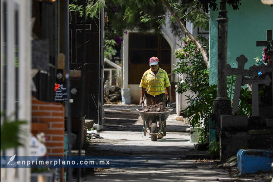 El “sepulturero” o “panteonero”, como se le conoce a la actividad de Marcelo, contó que en estas fechas que se acerca el Día de Muertos el ambiente en el camposanto cambia, se siente agradable.