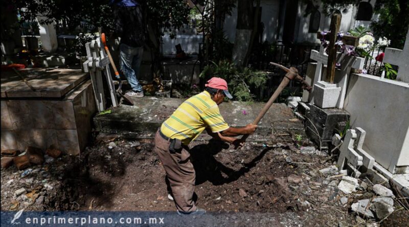 El “sepulturero” o “panteonero”, como se le conoce a la actividad de Marcelo, contó que en estas fechas que se acerca el Día de Muertos el ambiente en el camposanto cambia, se siente agradable.