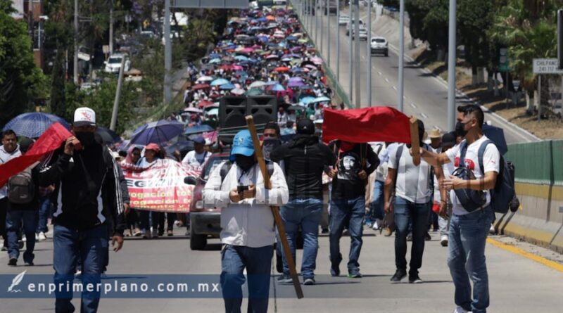 La manifestación ocurre en el marco del paro nacional de 72 horas de la CNTE en el país. Los docentes intentaron abrir el portón de herrería del Congreso local con una varilla, pero no lo lograron. Continúan hacia el Parador del Marqués