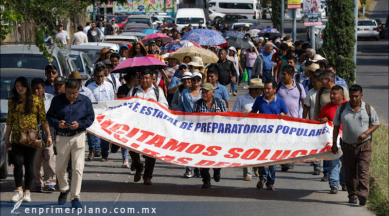 Maestros, alumnos y padres de familia de preparatorias populares marcharon para exigir la liberación del apoyo económico del mes de noviembre y diciembre para mil 50 docentes.