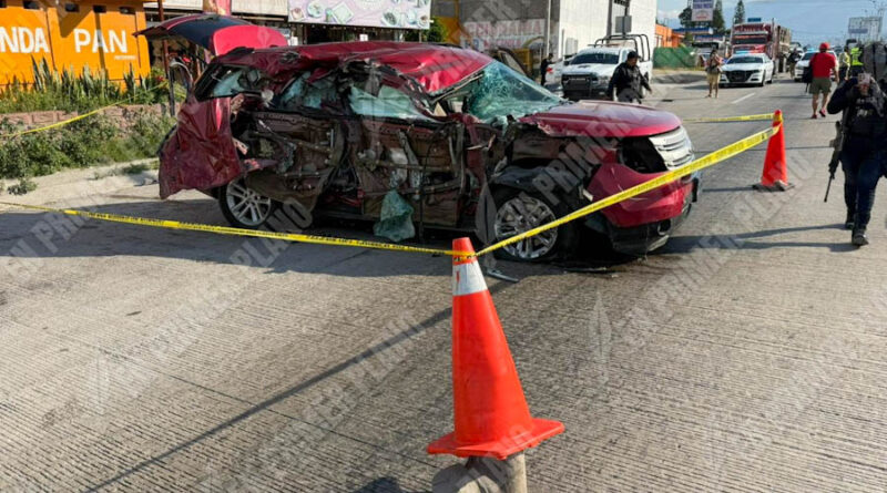 La camioneta marca Ford tipo Explorer color roja, placas de circulación PCJ-67-13 del Estado de México se estampo contra el costado izquierdo de un camión de carga conocido como góndola, color rojo marca Freigtlinerh.