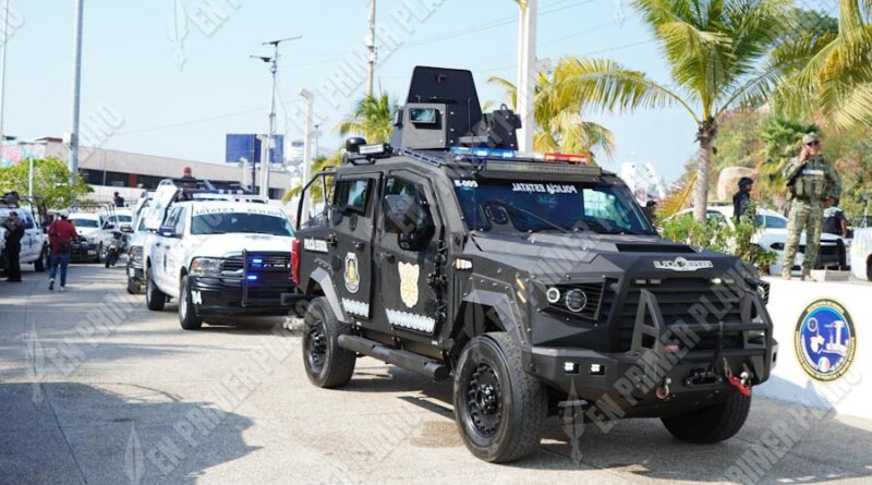 La Policía Estatal destina 791 elementos con 92 patrullas, 23 motos, 2 vehículos blindados tipo “mamba”, un helicóptero y cuatro binomios caninos que estarán junto con otras corporaciones, distribuidos en puntos como carreteras, plazas, playas, centros comerciales y bancos, desde el 17 de diciembre hasta el 7 de enero del próximo año.