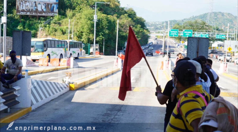 Protesta CETEG dando el paso libre en caseta La Venta de la Autopista del Sol