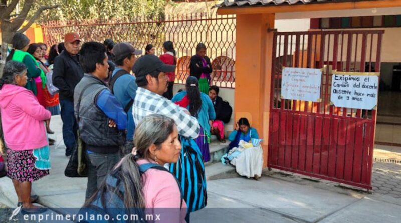 Más de 80 padres de familia de la escuela primaria bilingüe de la comunidad de Mazazontecomatl, municipio de José Joaquín Herrera, se manifestaron a las afueras de la Delegación de Servicios Educativos para exigir la salida de una maestra que, aseguran, lleva más de tres años sin presentarse a impartir clases.