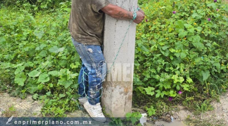 Retienen vecinos de la Flores Baños a ladrón y lo amarran de un poste
