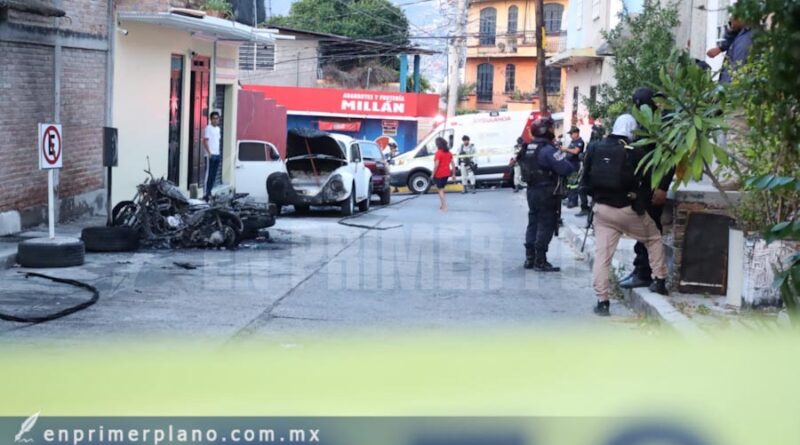 Cuatro motocicletas y un vehículo se incendiaron sobre la calle Guadalupe Victoria en el barrio de San Miguelito en Chilpancingo.