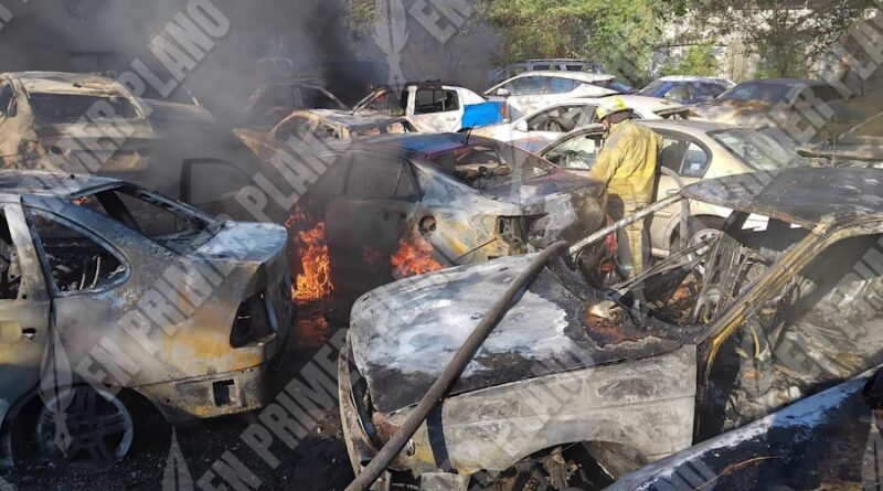 Este martes un incendio en el corralón de San Antonio dejó un saldo de 700 automóviles chatarras consumidos por el fuego.