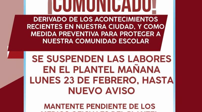 Planteles públicos como privados de nivel básico y medio superior anunciaron que este lunes 23 de febrero no habrá clases para salvaguardar a los alumnos ante los hechos de violencia que aquejaron hoy al puerto