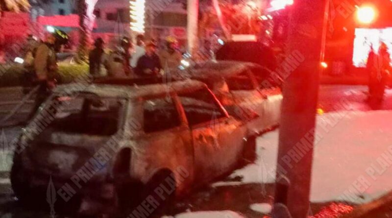 Dos automóviles chocaron y se incendiaron en la avenida Costera Miguel Alemán, frente al Club de Golf en Acapulco.
