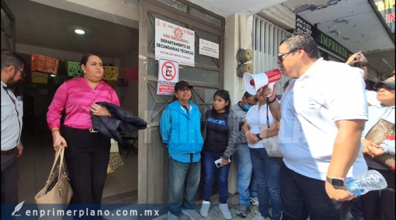 Integrantes de la sección 14 del Sindicato Nacional de Trabajadores de la Educación (SNTE) cerraron las oficinas de la Subsecretaría de Educación Básica, la dirección de Secundarias Generales, Técnicas y Telesecundarias en el cuarto día de protesta.